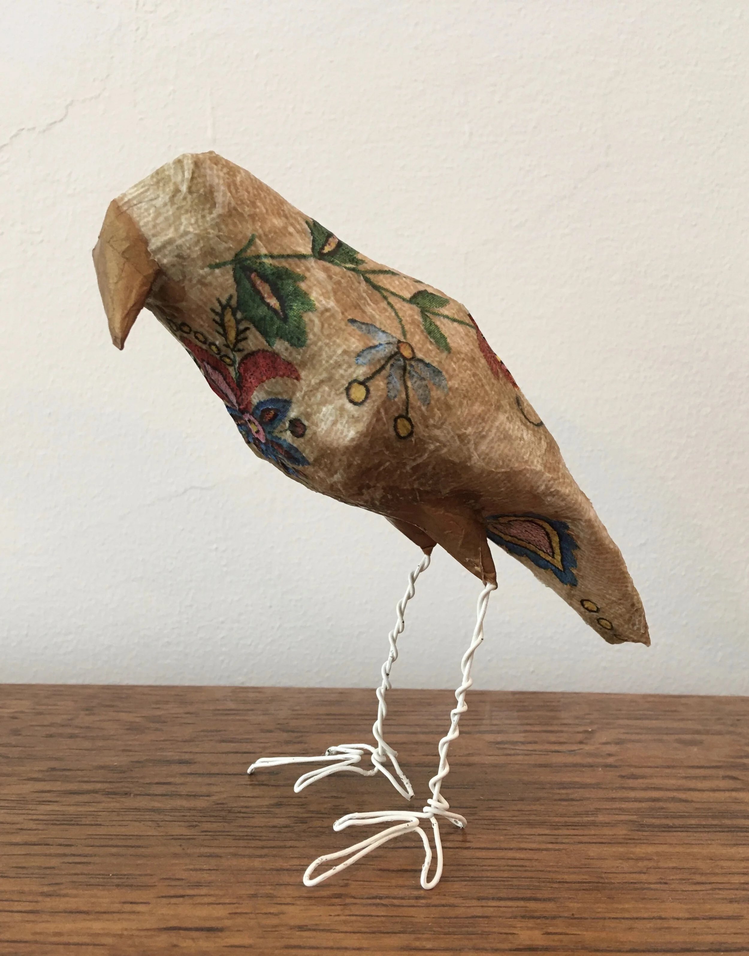 Chinese Embroidery Series - Recycled birds covered with wrapping paper printed with images of Chinese embroidery